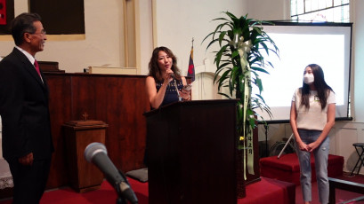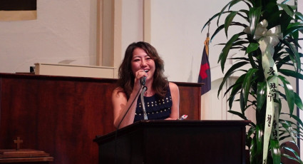 전혜진(신디) 교우가 신앙의 힘에 대해 이야기 하는 모습